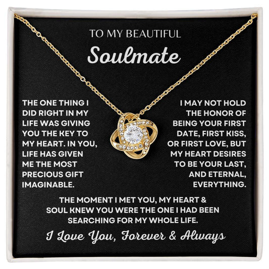 To My Beautiful Soulmate - My Heart & Soul Knew You Were The One - Love Knot Necklace